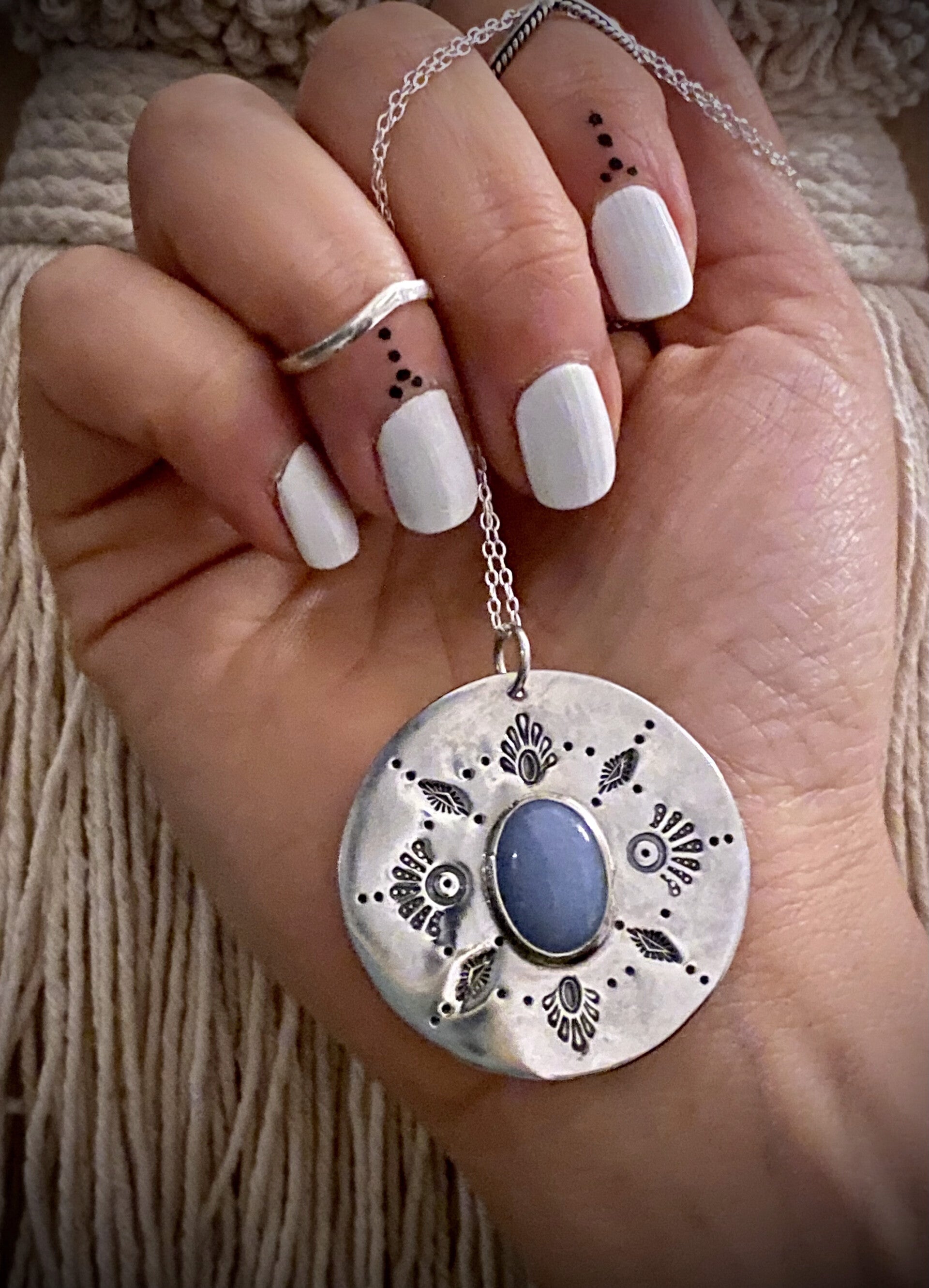 COLLIER ETHNIQUE EN ARGENT ET ANGÉLITE - MÖÖN -